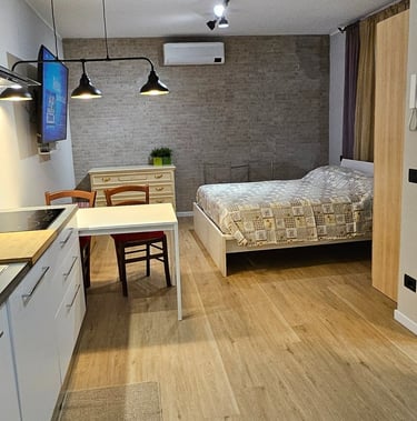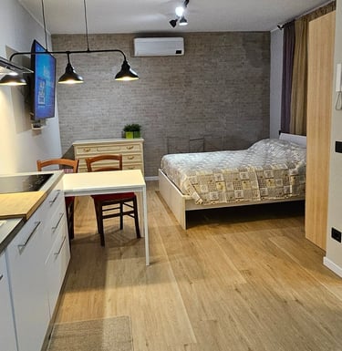 Design raffinato - ogni monolocale è elegantemente arredato con attenzione ai dettagli, dai pavimenti in legno alla TV da 65 pollici sino agli arredi di alta qualità per garantire un soggiorno confortevole come se fossi a casa tua.